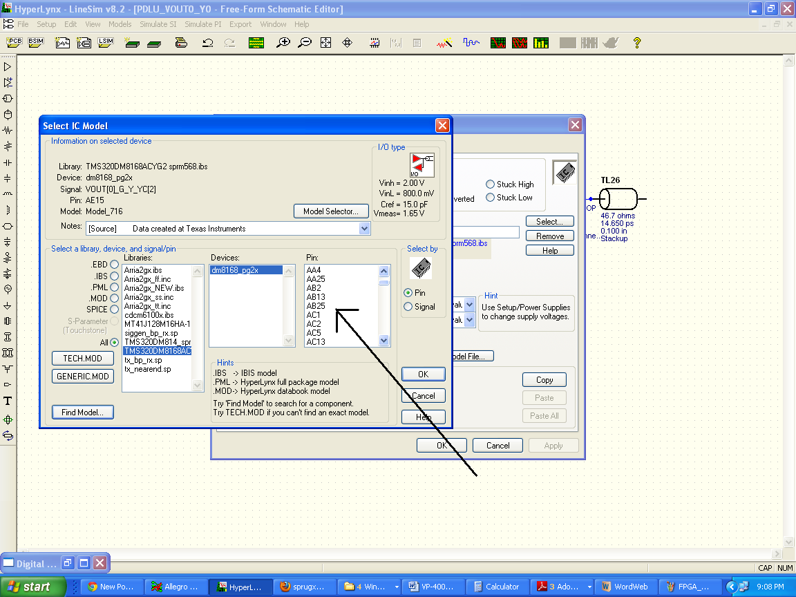 I am using TMS320DM816x processor in my design and I am using IBIS model for my Signal integrity simulation.I am unable to select the pin AB34 and AB33 ie (SERDES_CLKP and SERDES_CLKN) in the IBIS model .How can i select this pin in the IBIS model ?