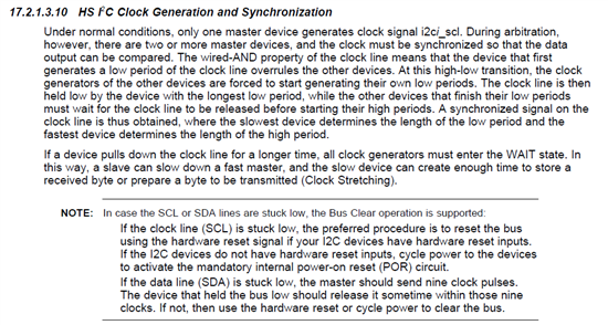 I'm have a I2C device that holds the I2C SCL (clock) low to indicate the wait period back to the master (DM3730). I know this as "Clock Stretching". I saw the below post where it is inherently supported for DM814X but I need to know if it is on the DM3730. I couldn't seem to find it mentioned in the TRM.