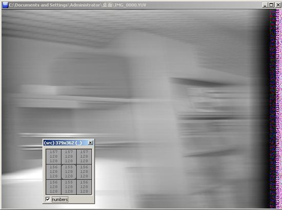 so we can see:(1)the frame is gray ,the color information is lose.(2)the piexls are all drift.