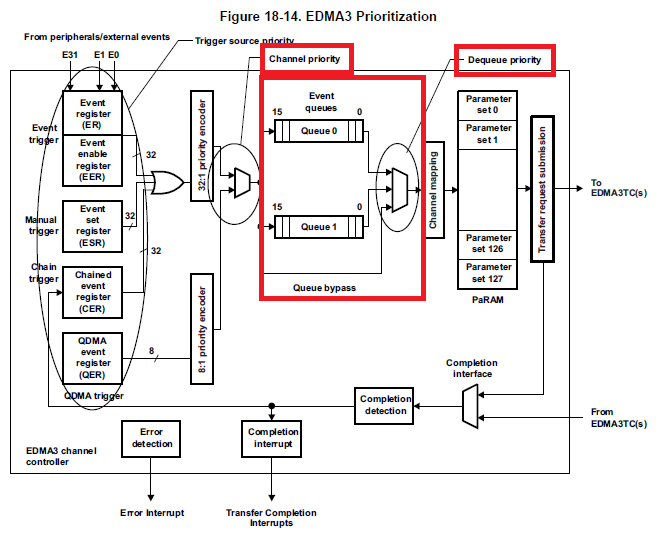 7. That means - SPI0 (EDMA channel_14) must have the higher priority than McASP (EDMA channel_0).