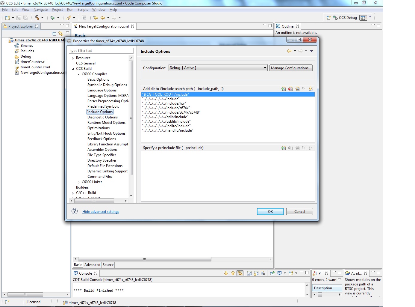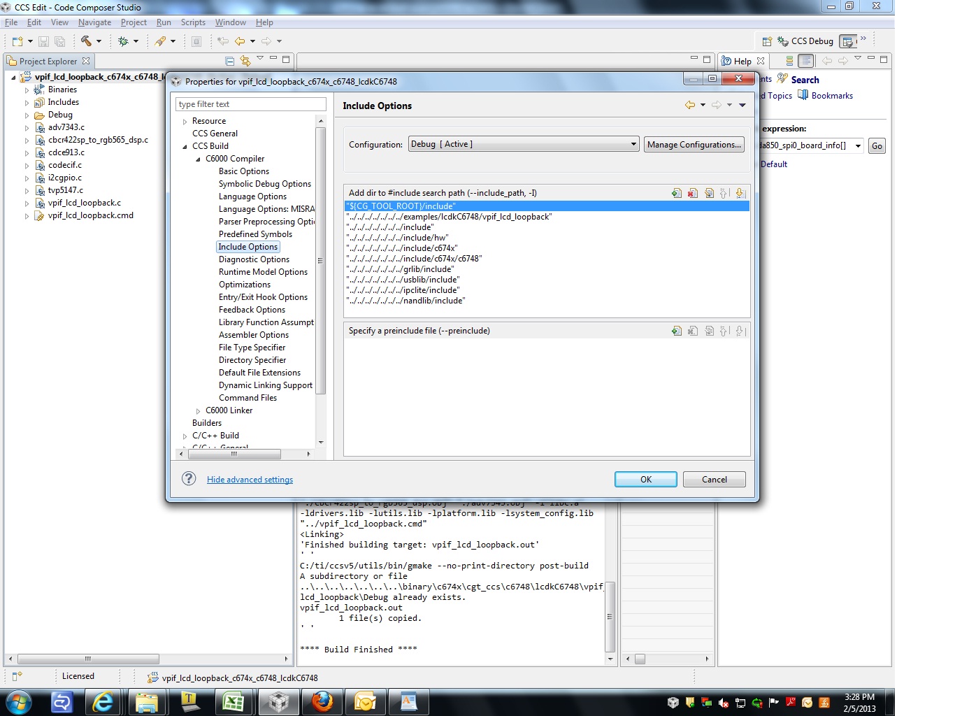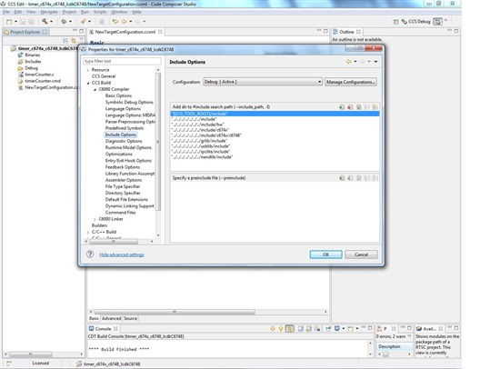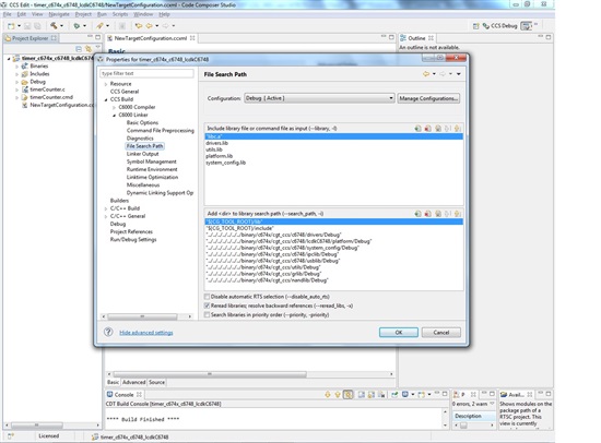 However, when I buit the project, CCS said that "(1) #10010 errors encountered during linking; (2) cannot find file "...\evmc6748_bsl.lib" ".