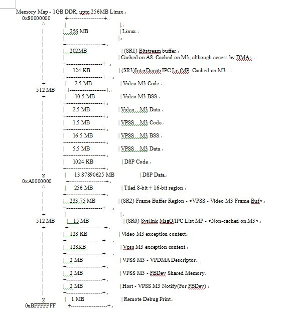 | 278 MB | (SR1) Bitstream buffer {Cached on A8. Cached on M3, although access by DMAs}