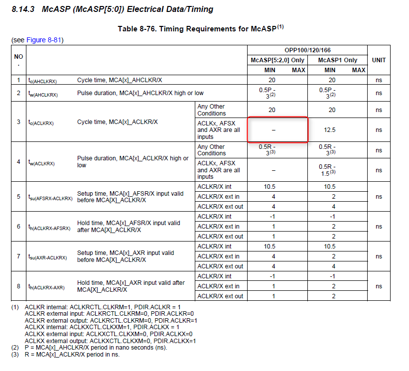 The DM8148 Sep 2012 datasheet is missing cycle time for McASP