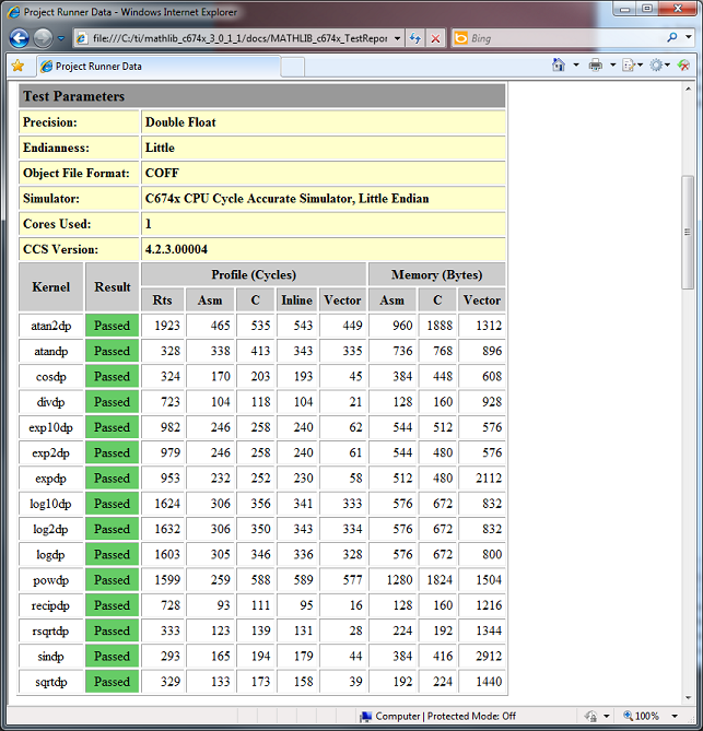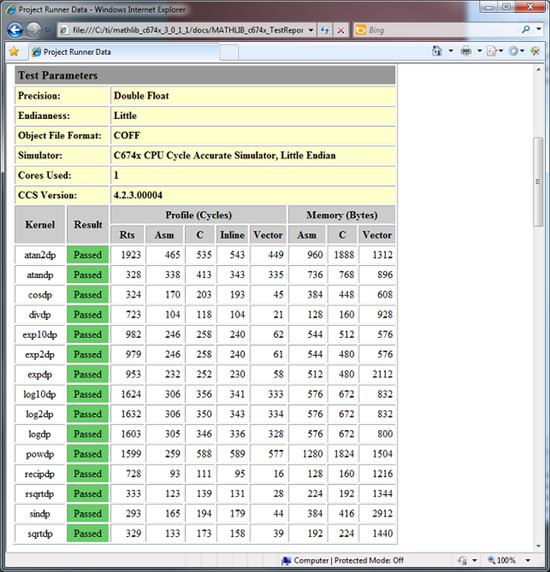 With C674x DSP (TMS320C6746), can I know the required clock cycles for below math operations?