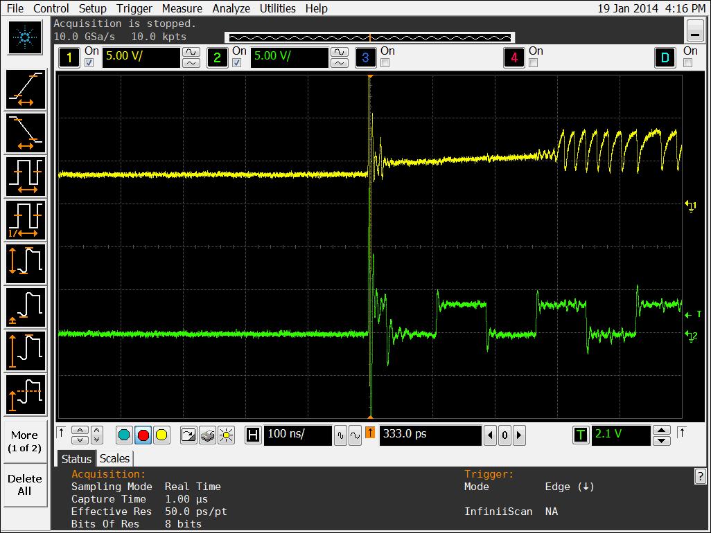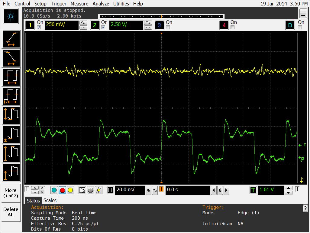 Hello, I am a beginner for dsp. In past month, I designed a dsp board. Now, I am testing the board. However, sadly, my dsp can't work. This may be the smallest thing for long time user, but I can't fing the answer. I followed the instruction on the web, and checked my clkout2 and clkout3 outputs. I found that clkout2 outputed a clock of unstable frequency before dsp was reset. After dsp was reset, clkout2 and clkout3 outputed no signal. Is my dsp IC damaged, or my circuit is wrong? Thank you very much!