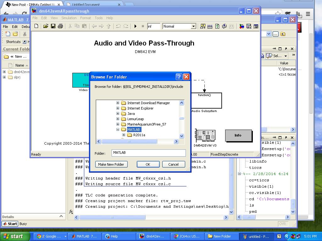 EVMDm642 with the simulink, i tried to run the audio video loopback simulink program i built the program while building, it ask for the folder location name as $(BSL_EVMDM642_INSTALLDIR)\include,i gave the path of normal EVM642 BSL folder but it shows as invalid folder and i set up the system environment variable path for the above thing also but it shows the same error for all simulink programs if anybody knows kindly give the solution..