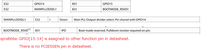- GPIO[15:14] is multiplexed as PCIESSMODE[1:0]. Right?