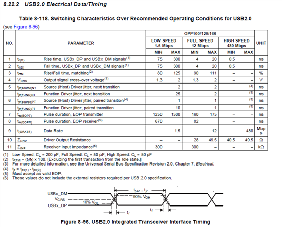 The data you show in the DM8148 datasheet (you will also see the same table in OMAPL-L138 datasheet) is a distilled version of the information from the USB org standards specification.
