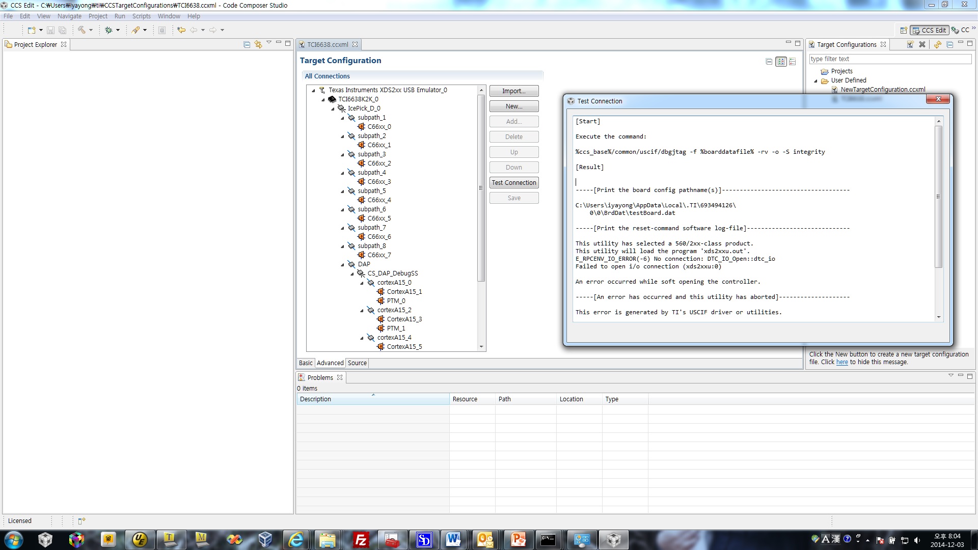 below log is trouble shoot when I try to connect tci6638 with CCSV5.x