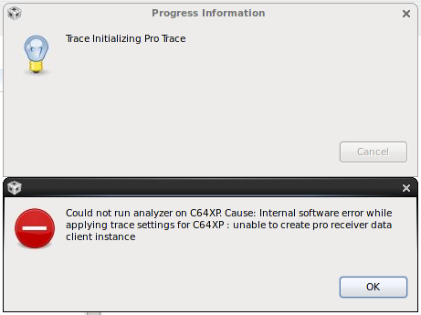 I'm trying to do some profiling on a TMS320TCI6488 (part of a quite long chain of dsps) but run into this error message when I try to start the PC Trace: