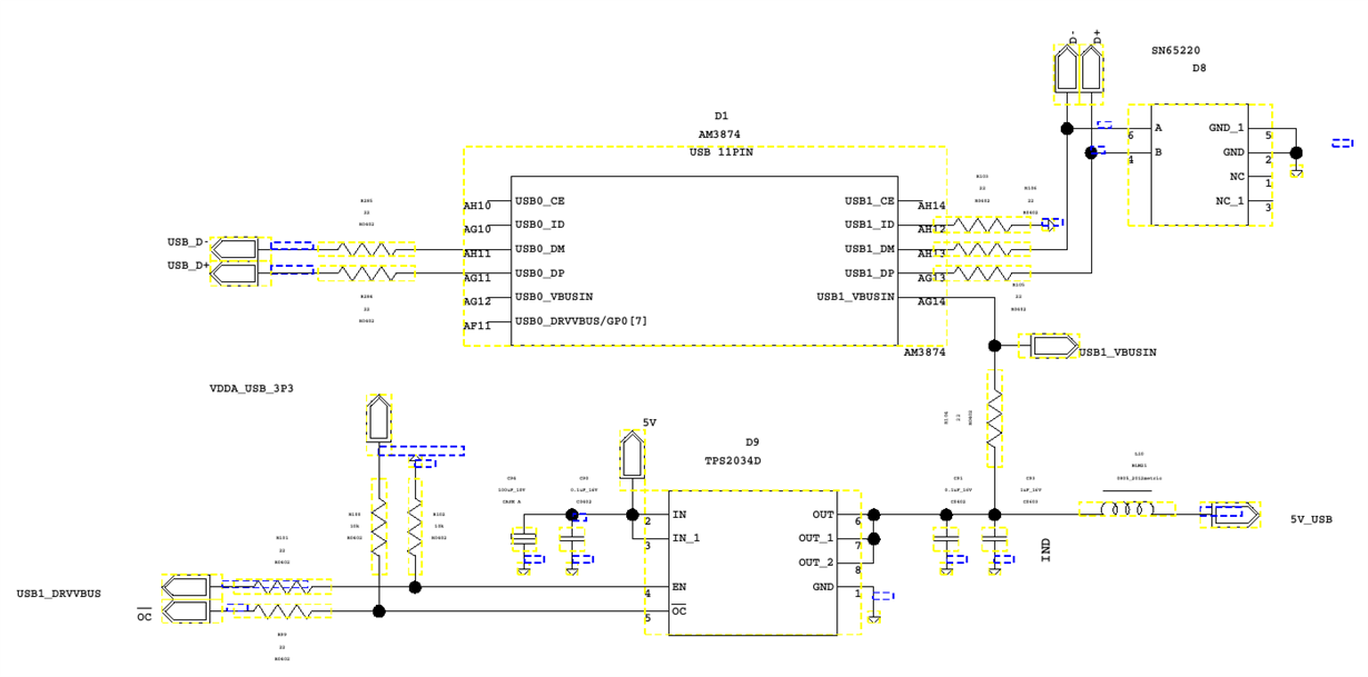 In attachment there is also a partial schematics of our USB circuit. USB0 is not in use, we are interested only in USB1.