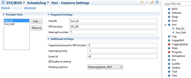 I2S_ISR | Event #61 | CPU interrupt #7 |