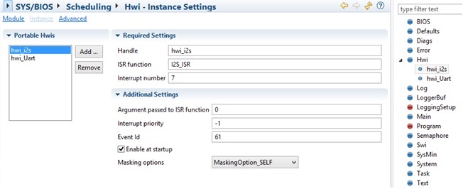 Then I copy the same code into I2S_ISR() and in app.cfg, following settings on app.cfg