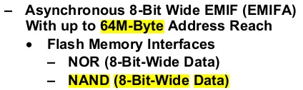 1. I checked datasheet that EMIF only supported 64MB address reach. Did this mean NAND flash only support up to 64MB?
