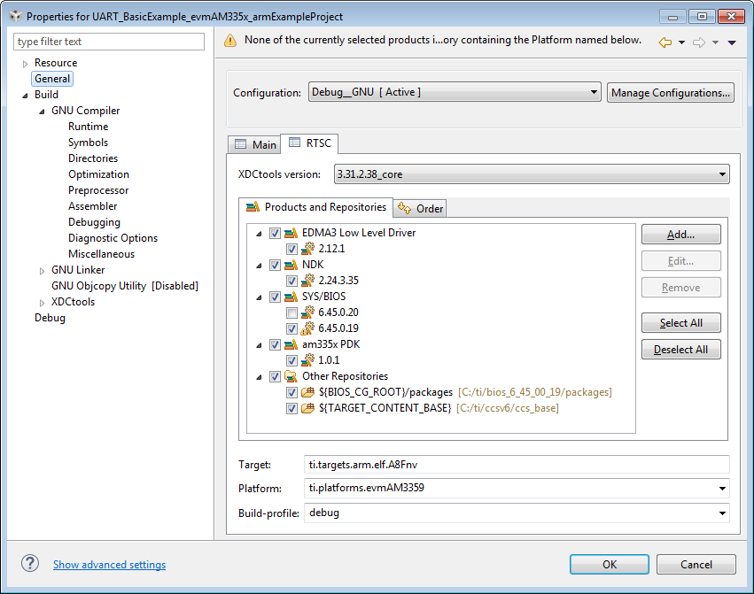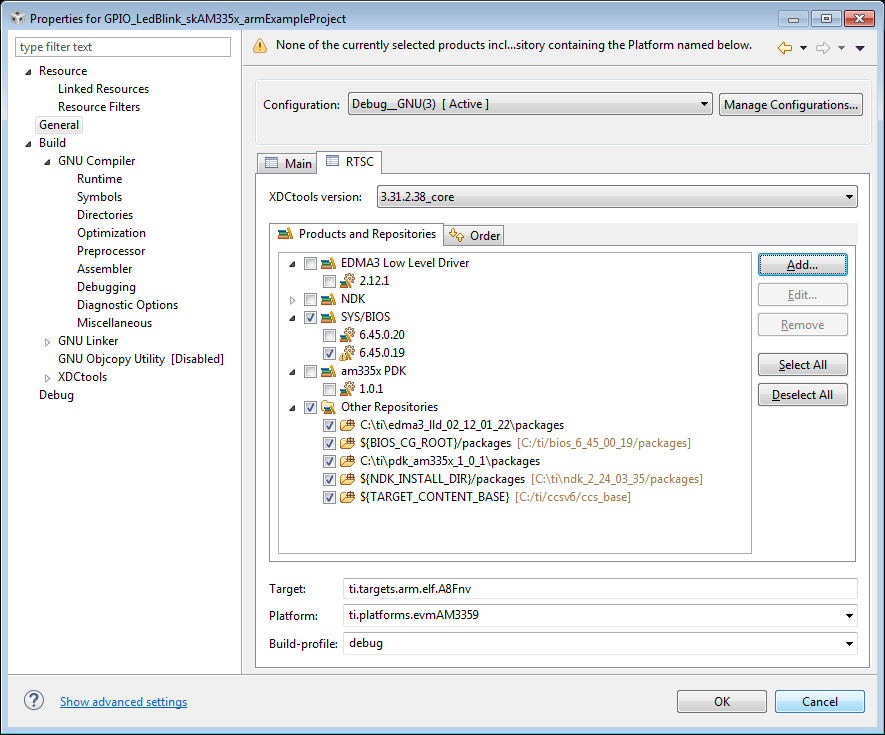 I'm new to the whole line of TI processors, and tasked with getting a complex RTOS application running and ready for market on an AM3358 with resistive touch screen. (I'm not new to firmware programming, and not new to RTOS concepts and have a few complex RTOS products already out in the field and running well.) So I am taking myself through the learning steps one at a time. Currently, I'm trying to do one of the exercises (Labs) in the TI-RTOS training videos (TI-RTOS Workshop Series with Eric Wilbur), which is implementing a sort of "hello world" using SYS/BIOS (TI-RTOS Kernel) to simply blink an LED. I am currently working with the AM335x Starter Kit board, so I'm having to adapt several things (including changes in the software versions of CCS and SYS/BIOS since those videos were made).