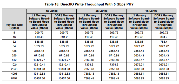 We are doing SRIO throughput test on K2H EVM. The measurement is based on board to board through SRIO switch by using NWrite and NRead packet in 4 lanes 5Gbps mode. The theoretical link rate is 2000 MBytes/s without overhead.(4*5Gbps*0.8/8=2000 MB/s)