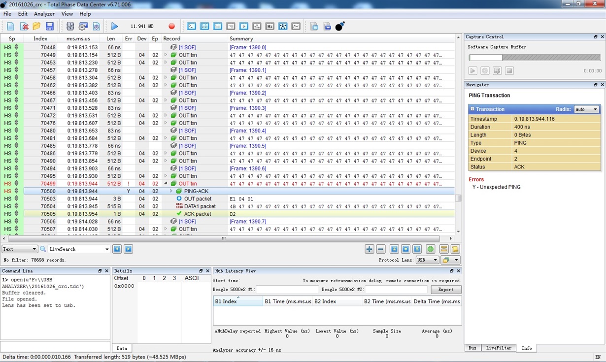 I meet unexpected PING-ACK issue when usb host transmit special data packet via usb analyzer.The issue may only occur when the follow conditions are established: