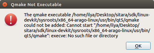 I'm trying to set QtCreator development kit for sitara am5728, but when I'm trying to set the qmake as it describes here, following error appears.