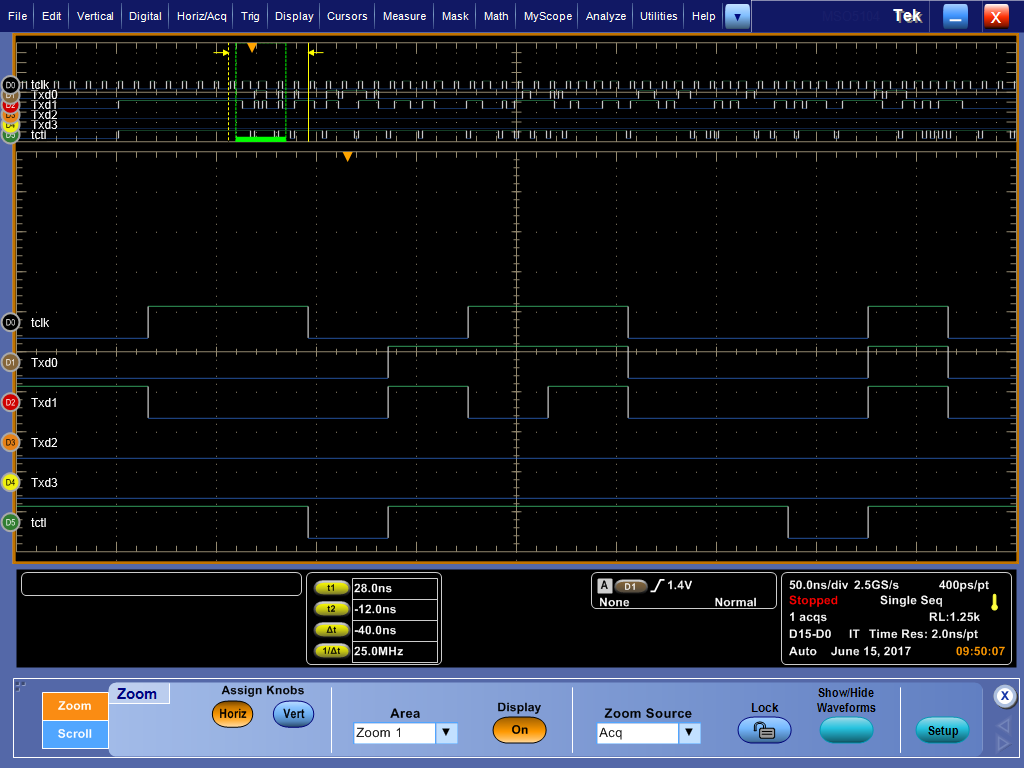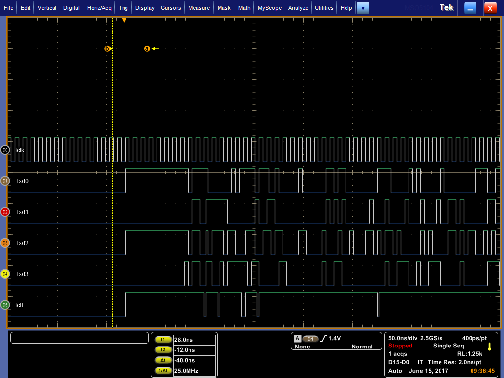 I am working on a design that is based around the AM3358. We have been trying for some time to get gigabit Ethernet working but haven’t had any luck. We are using Microchip’s/Micrel’s KSZ9031RNX PHY, and it talks to the AM3358 over RGMII. When we do throughput testing with a 1 Gb link, we often only see ~1 Mbps. With a 10/100 link, we see speeds in line with what we’d expect. Our thought is that something is off with our skew values that is causing issues at gigabit speeds.