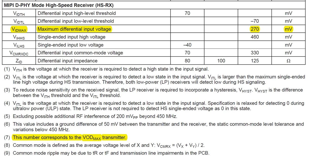 In the latter case, the maximum value of CSI transmission specification is 270 mV as a standard. So, considering the reflection on the transmission line etc, we are worried that TDA3x can not connect with MIPI standard device.