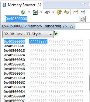 However, when looking at 0x40500000 with the CCS memory browser, it becomes "???".