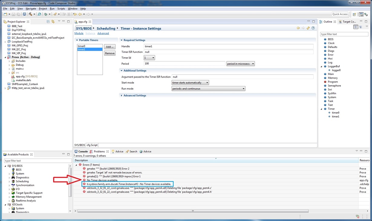 I found this problem in a project so I created a SysBios project in CCS and I tried to add two timers from the configuration file and this is the result: