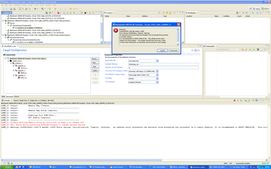 I create new target configuration file according to page http://processors.wiki.ti.com/index.php/How_to_connect_to_the_OMAP-L138/C6748_EVM_board_using_CCS%3F#XDS100v2.2C_XDS510_or_XDS560_external_emulator_-_DSP_.2B_ARM__.28OMAP-L138_SOM.29