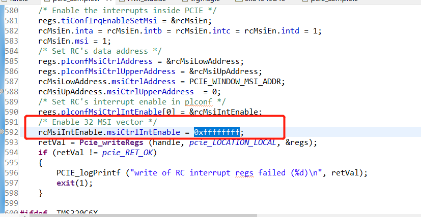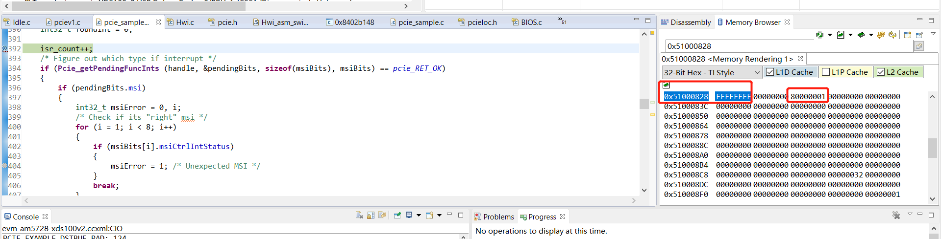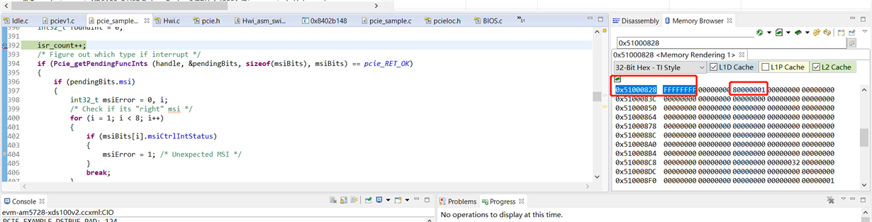 TI, I am using the PCIE_idkAM572x_wSoCFile_C66BiosExampleProject demo,Now I can get the msi from FPGA.