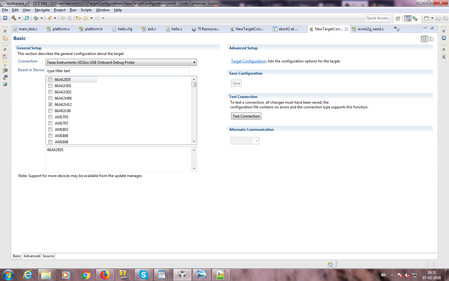 and I used C:\ti\ccsv7\ccs_base\emulation\boards\xtcievmk2x\gel file.