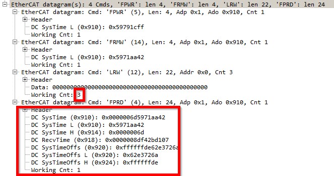 We asking the EtherCAT team to have a look at the attached wireshark log (and the master log) to identify and hopefully solve this issue.