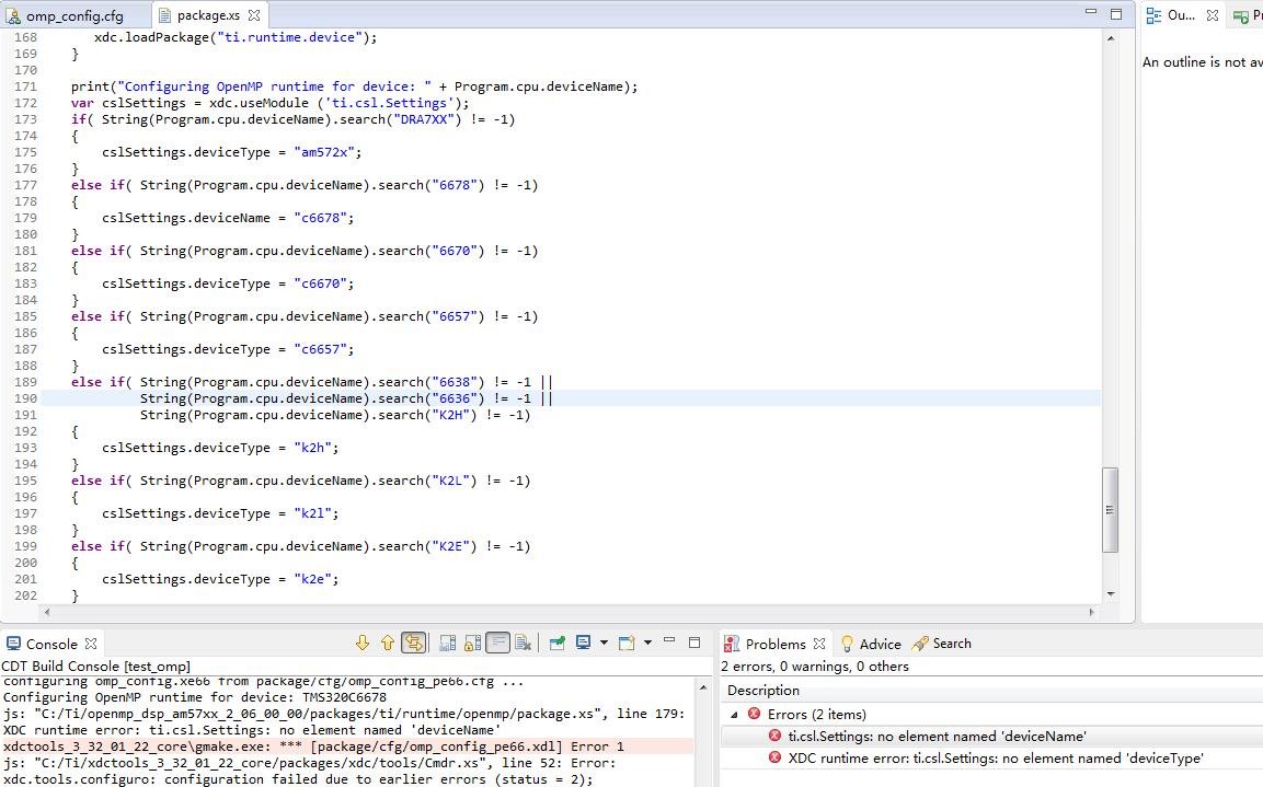 When building OpenMP with CCS 6.1, it prompted that " no element named 'deviceName'". How to resolve it?