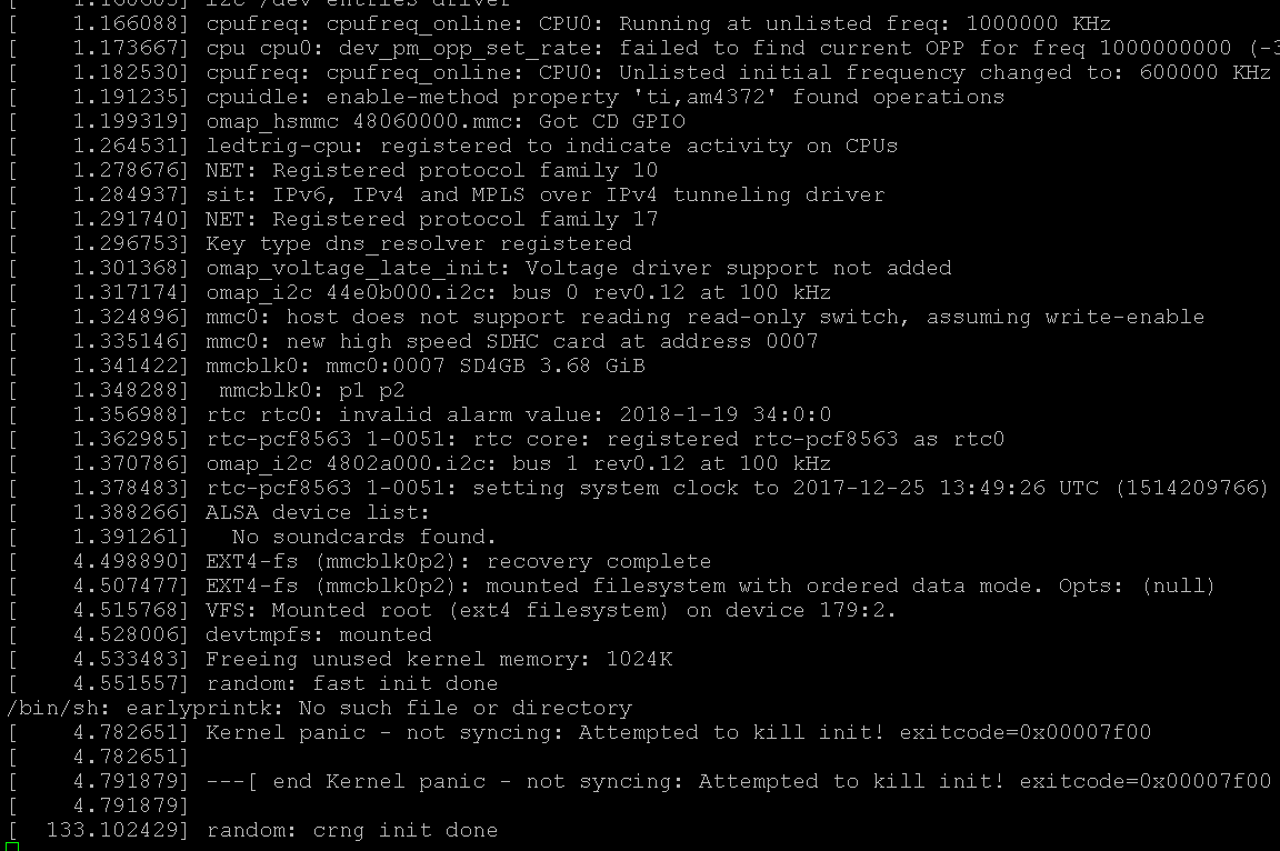 e the board, the system random start up correct . most time , it stop at the start kernel or stop at the kill kernel like the picture as below .