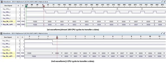 Hi, everyone. In my board, DSP(6455) transfers data from L2 RAM to external memory with EDMA3. After power up, I found DSP run normally(EDMA3 has low efficiency, it uses almost 80 CPU cycles to transfer a data) with its first loaded program. But if the program reloaded(.out file not changed) or restarted, DSP could run normally(EDMA3 transfer a data in one CPU cycle). what is the reason?