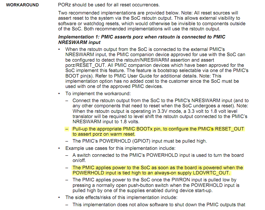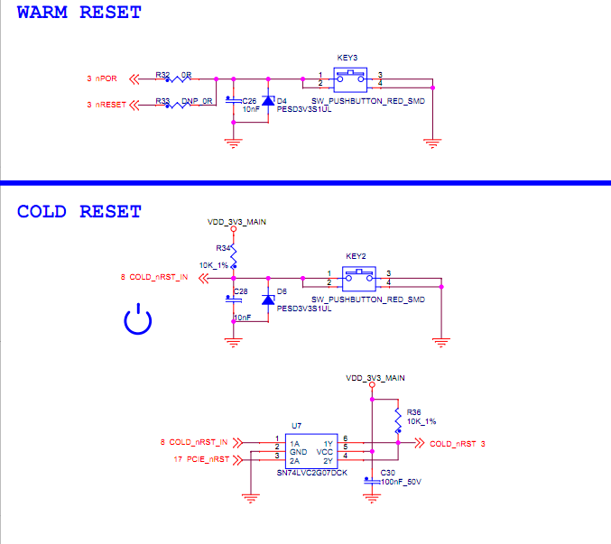 We've made a custom board according to 5728 evm board,we have designed the cold reset button and warm reset button. The cold reset buttom is to reset PMIC to accomplish a POR reset and the warm reset buttom connect directly to PORn pin of AM5728。The schematic shown in the following picture. when I did the power-on-reset test,I found the 5728 can't boot (boot from eMMC) when I press the cold reset button twice countinuously, about three minutes later, it boot automatically and system start up successfully. And I try double press the warm reset button and the problem reappeared frequently.Then I test the GP_EVM board we bought and GP_EVM also have the same problem.