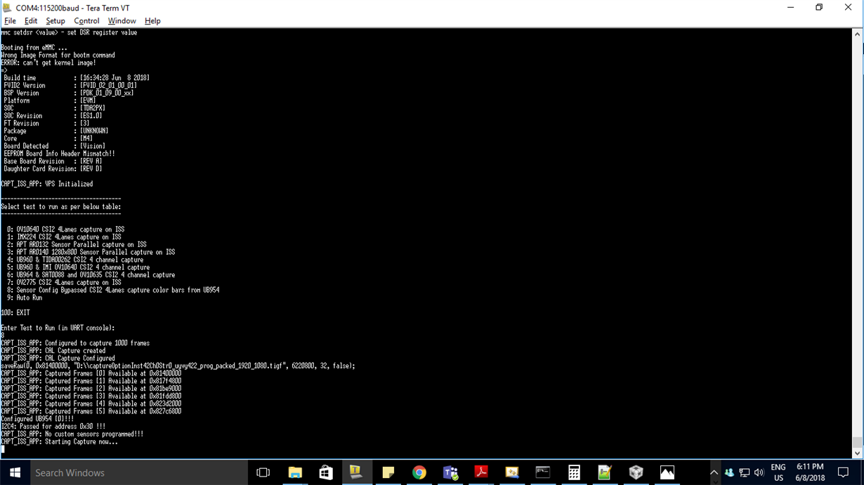 I am trying to generate test pattern on TDA2px EVM with DS90UB954 EVM. I have added iss_capture_null use case for the same. I am storing the o/p in raw format. I am getting black image.