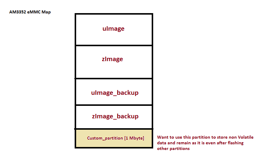 I am using AM3352 ti processor I want to create a small one Mbyte partition of eMMC that can work as non volatile memory for me. So i can read/write system data anytime.