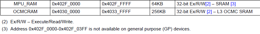 According to TRM, on GP device, on-chip RAM start from 0x4030_0000, why the entry point is 0x402f_0000? I tried on my AM437x IDK board REV1.3A, address of 0x402F_0000 can't be accessed. Is it always available for ROM bootloader not for user?