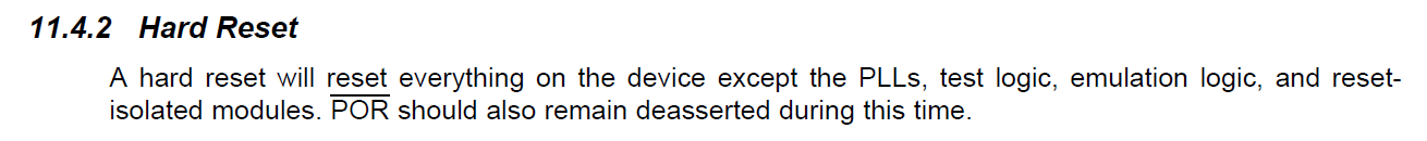 - Do you confirm that RESET signal does the same as RESETFULL except for isolated modules (actually only SRIO and Smartreflex) and PLL, meaning that ARM cores and DSP cores will re-start RomBootLoader in the same manner as upon power-up, based upon DEVSTAT,SRIO,smartreflex and PLL current settings.? I also note that DDR3 content is generally lost (probably because DDR controler is reset to default values)