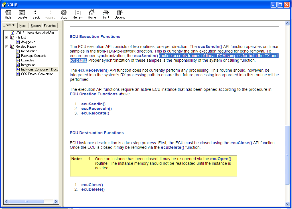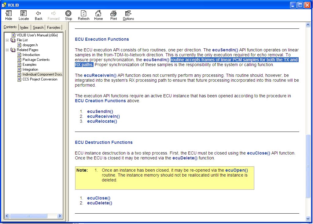 according to volib_C66_2_1_0_1 chm document ecuSendIn routine accepts frames of linear PCM samples for both the TX and RX paths.