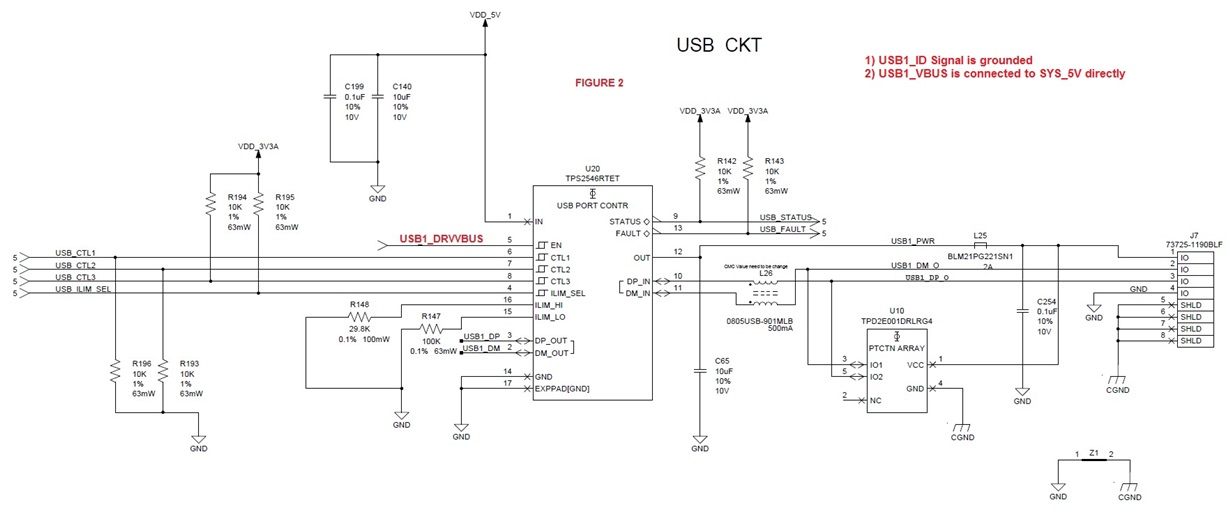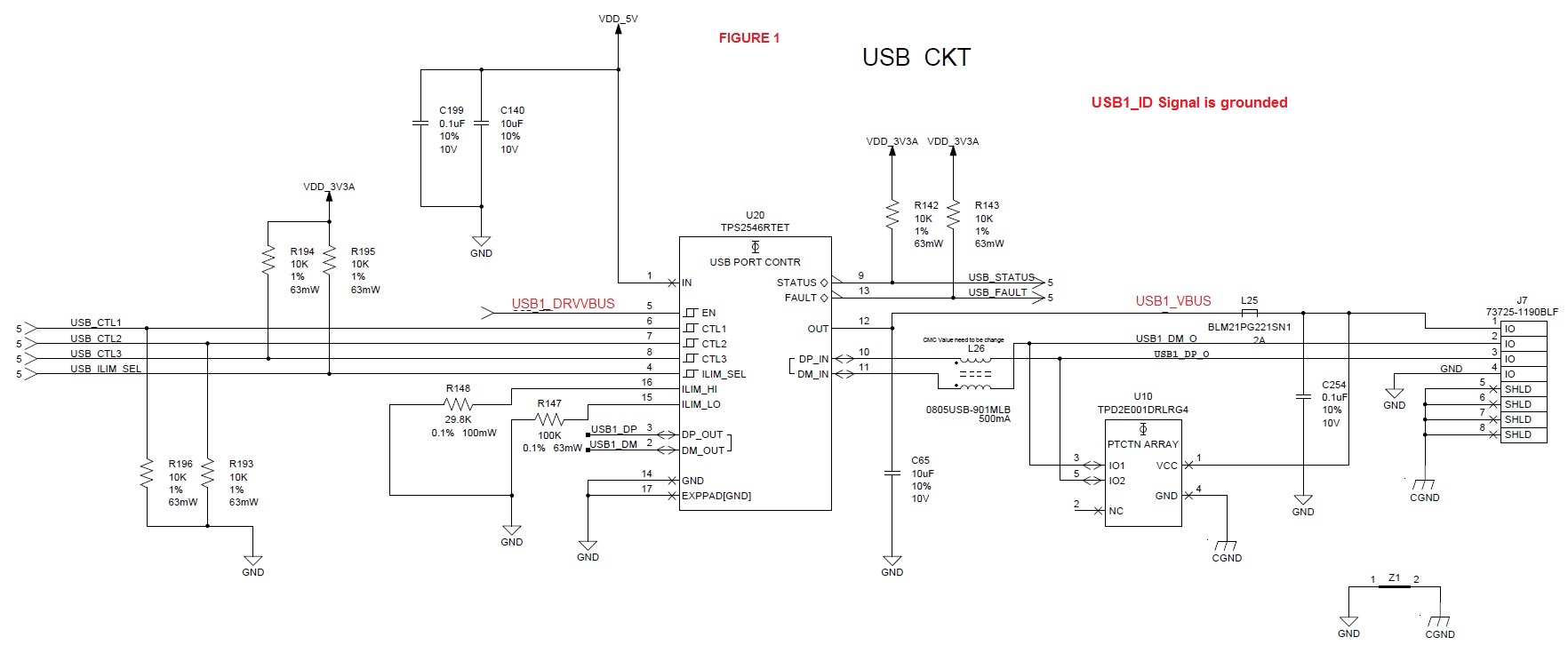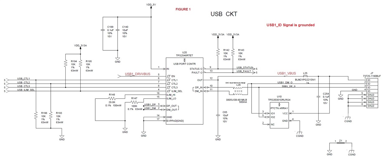 USB1_ID is NC, USB1_DRVVBUS is connected to TPS2546 enable pin , and USB1_VBUS is connected to TPS2546 output and to the pin1 of USB A connector.