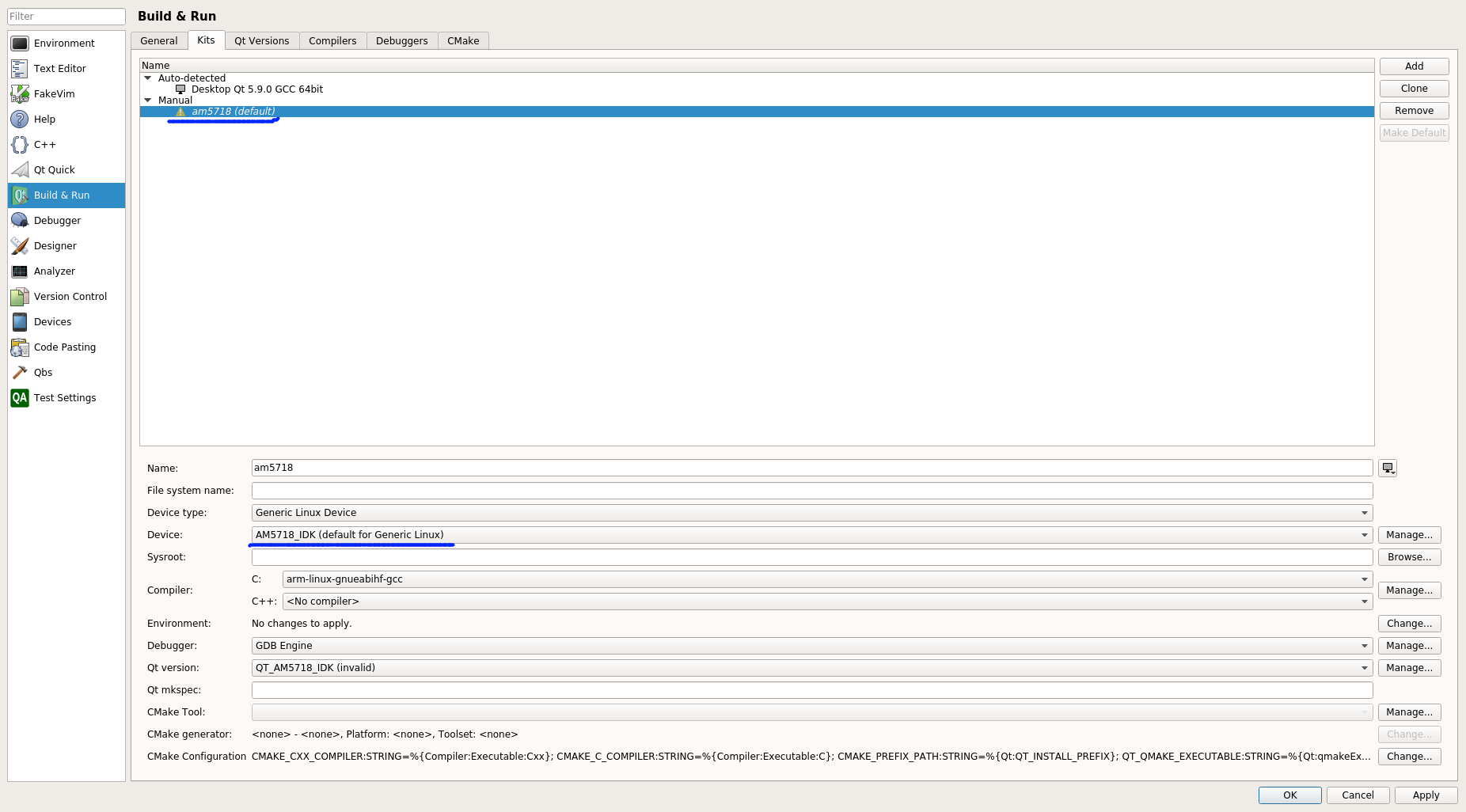 I am working on AM5718 Linux Qt, i installed Qt Creator 4.3.1 Based on Qt 5.9.0.