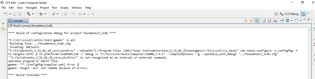 "C674X_0: GEL: Encountered a problem loading file: C:\Program Files (x86)\Texas Instruments\c6sdk_02_00_00_00\demos\facedetect\build\cgt_ccs\lcdk\Debug\facedetect_lcdk.out Could not open file".