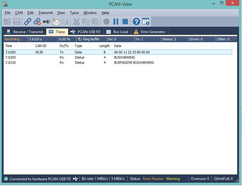 I have attached the image of pcan-view, trace error.