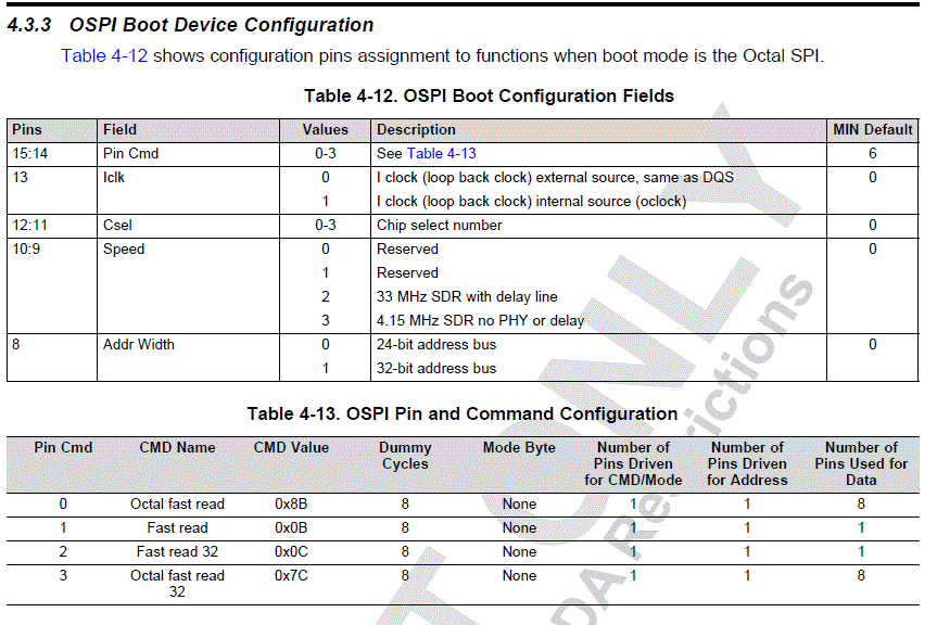 Could you please point what are the default values for each boot media type (notably OSPI)? .Preliminary search of TRM did not reveal this.