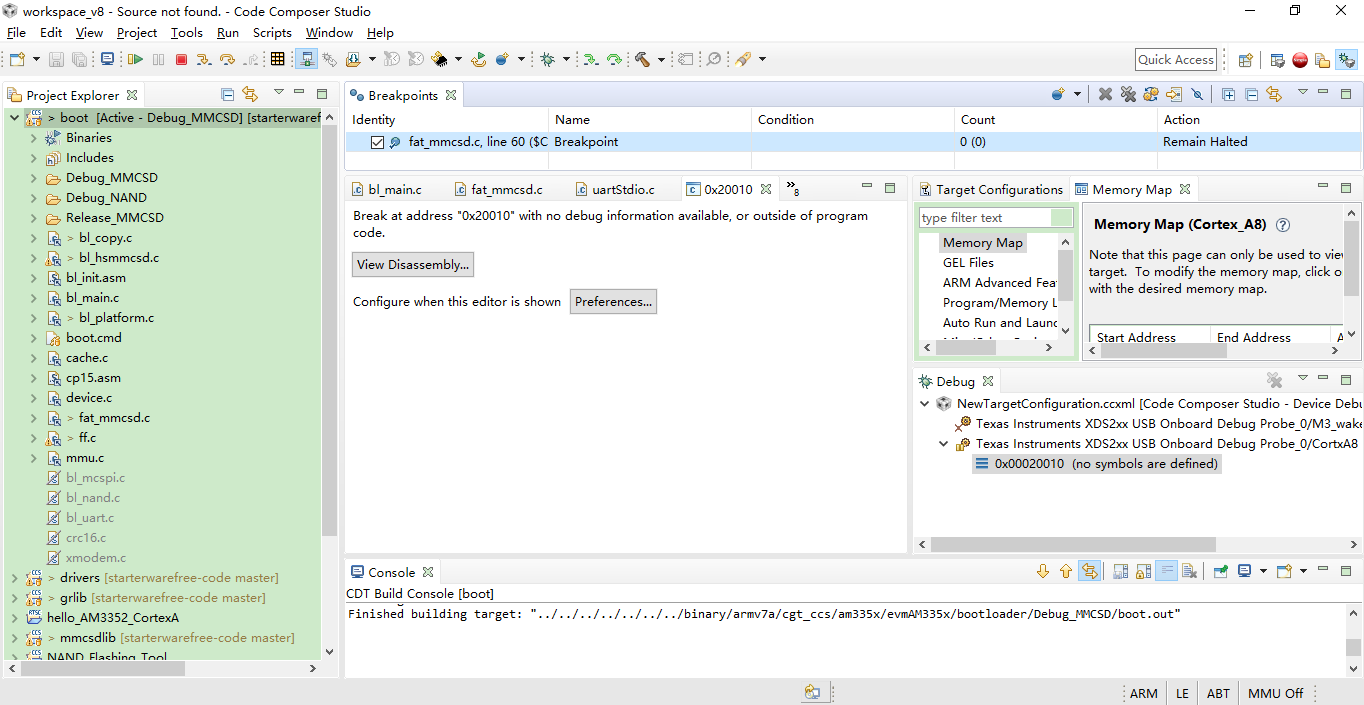 Break at address "0x20010" with no debug information available, or outside of program code.