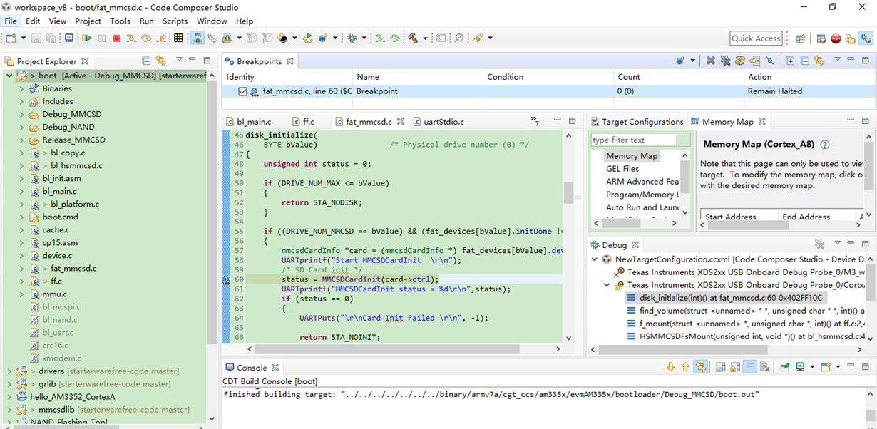 I build it by Debug_MMCSD,and all the related libs are also builded by debug mode.