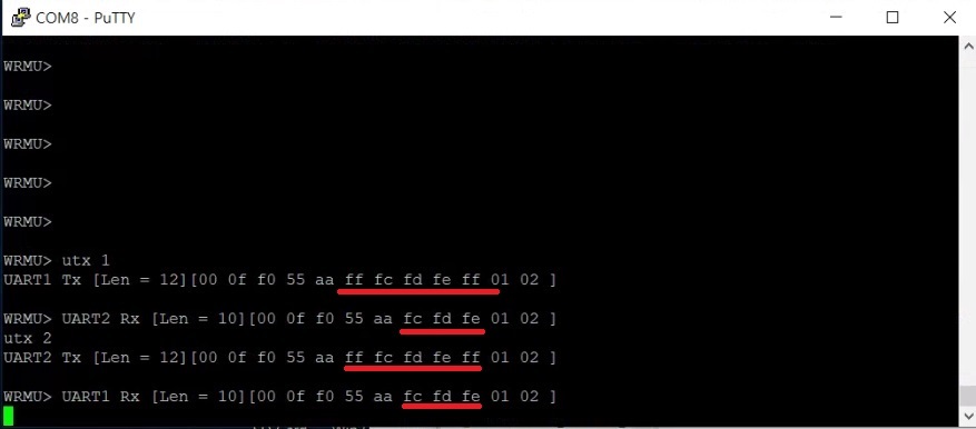 Looping UART1 & UART2 and sent data from one UART and receive other UART.