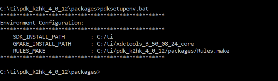 - Run C:\ti\pdk_k2hk_4_0_12\packages> pdksetupenv.bat