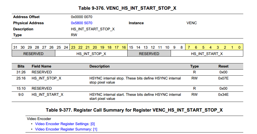 Not the HSYNC start, you will have to play with the VENC_FLEN_FAL register, this register decides start of the active video.