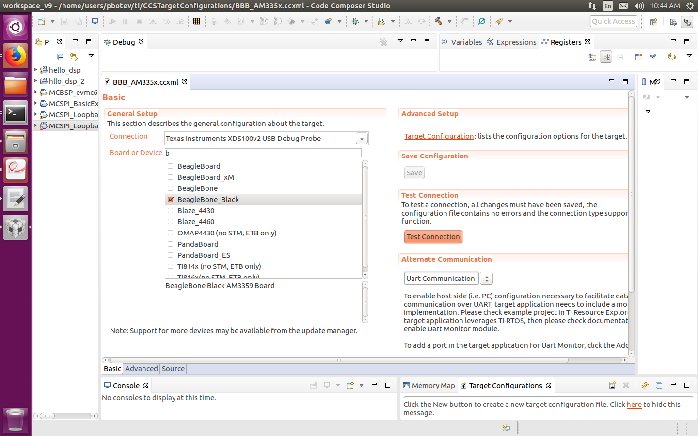 My target configuration is Connection is Texas Instruments XDS100v2 USB Debug Probe. Board or Device is BeagleBone Black. Test Configuration seem to be good. But I can't debug with Break at address "0x2412a" with no debug information available, or outside of program code. What should I do? or where I did wrong? Thanks
